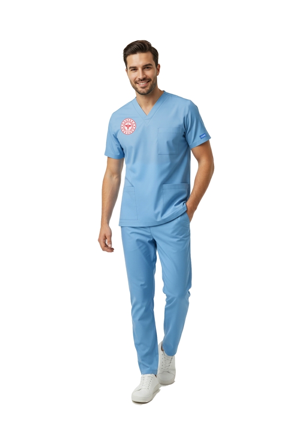 Alaska Mavisi Doktor Hekim Forması Pozitif Likralı Scrubs Takım (Yeni Yönetmelikle Uyumlu – Alaskan Blue)