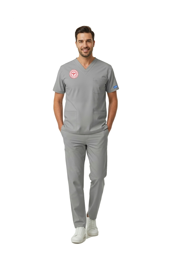 Gri Teknik Hizmetler Forması Pozitif Likralı Scrubs Takım (Yeni Yönetmelikle Uyumlu – Neutral Gray)