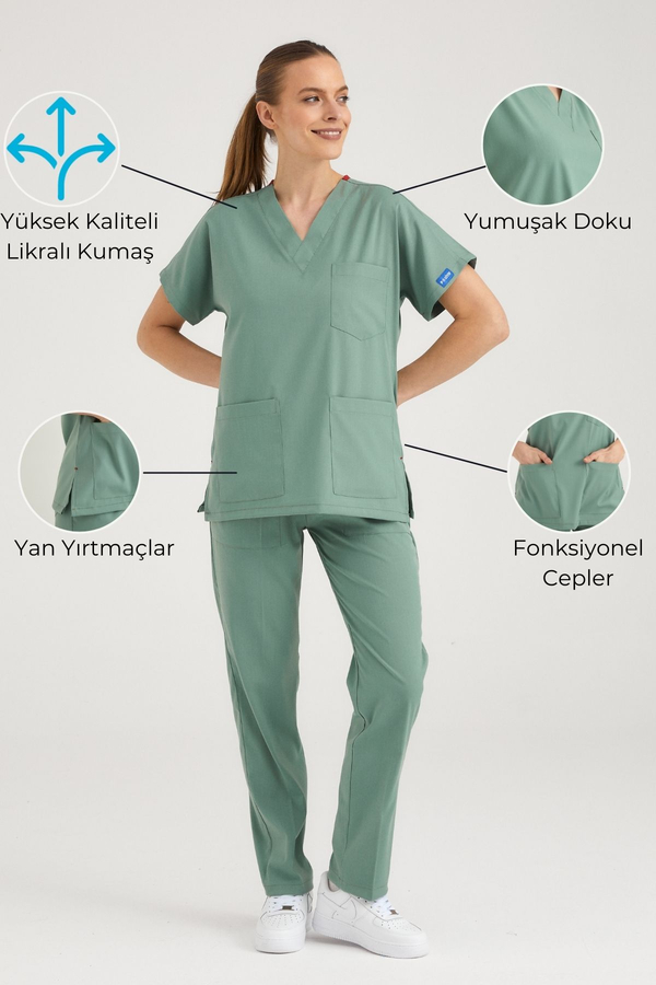 Mint Yeşili Pozitif Likralı Cerrahi Takım - Scrubs Forma (Alt+Üst)