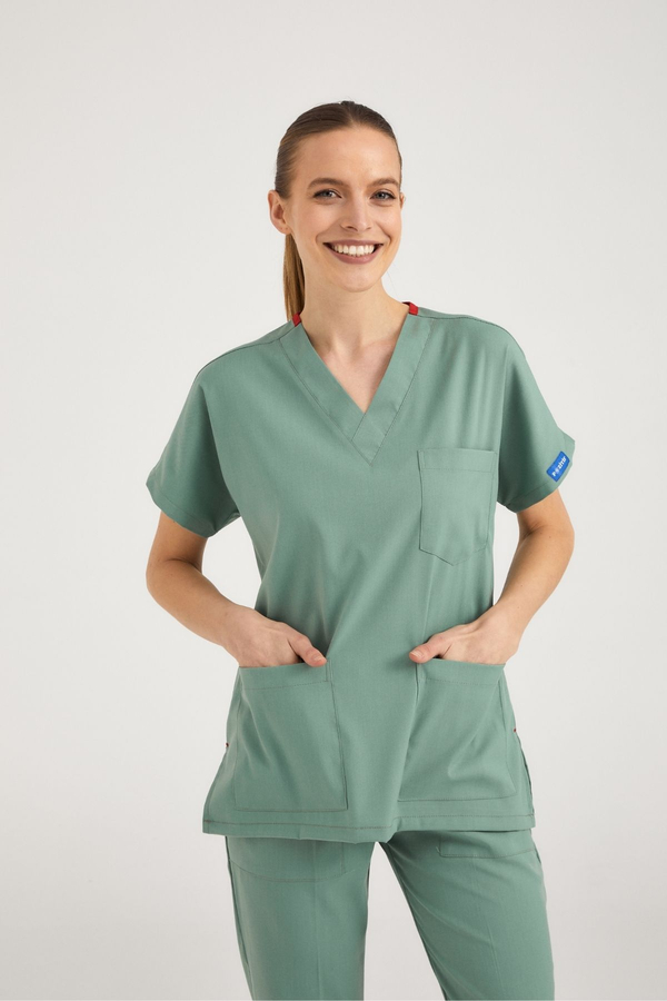 • Üstte göğüs cebinde 1 ve etek bölümünde 2 cep mevcuttur.