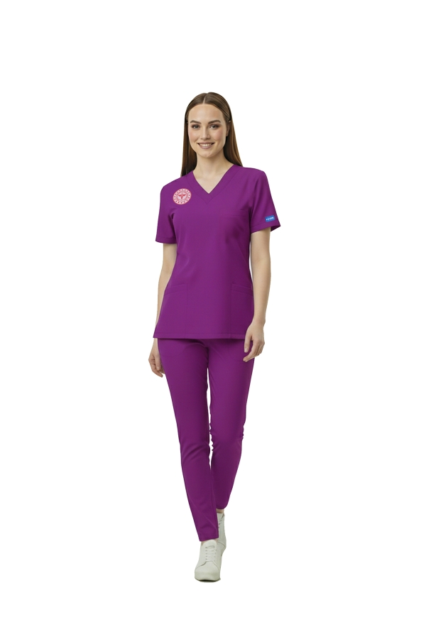 Byzantium Mor Ebe Forması Likralı Scrubs Takım | Yönetmelikle Uyumlu