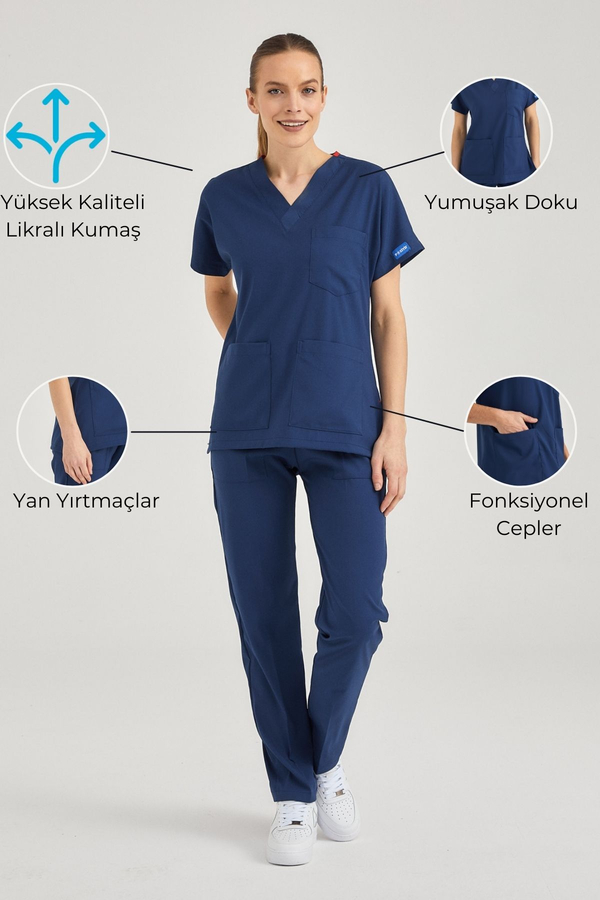 Petrol Mavisi Pozitif Likralı Cerrahi Takım - Scrubs Forma (Alt+Üst)