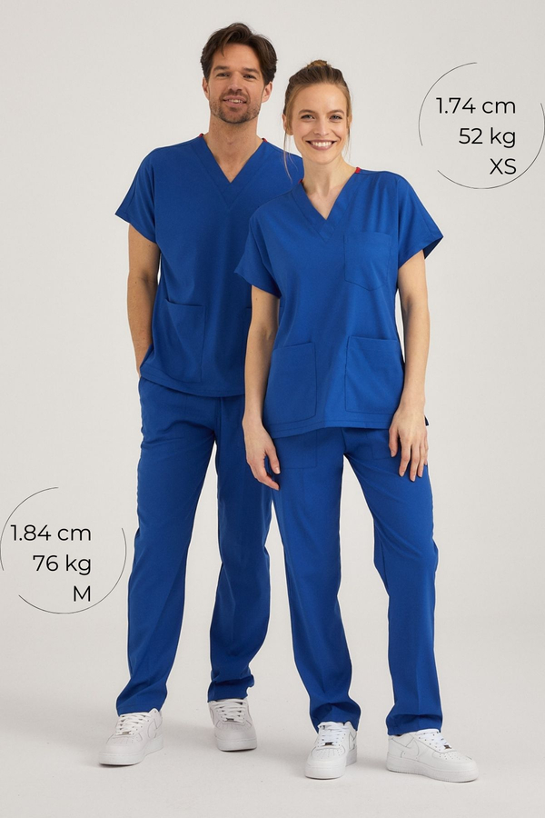 Saks Mavisi Pozitif Likralı Cerrahi Takım - Scrubs Forma (Alt+Üst)