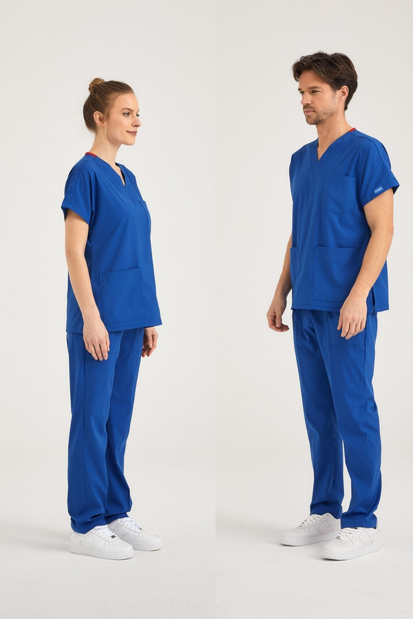 Saks Mavisi Pozitif Likralı Cerrahi Takım - Scrubs Forma (Alt+Üst)
