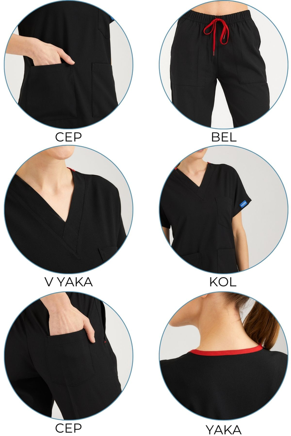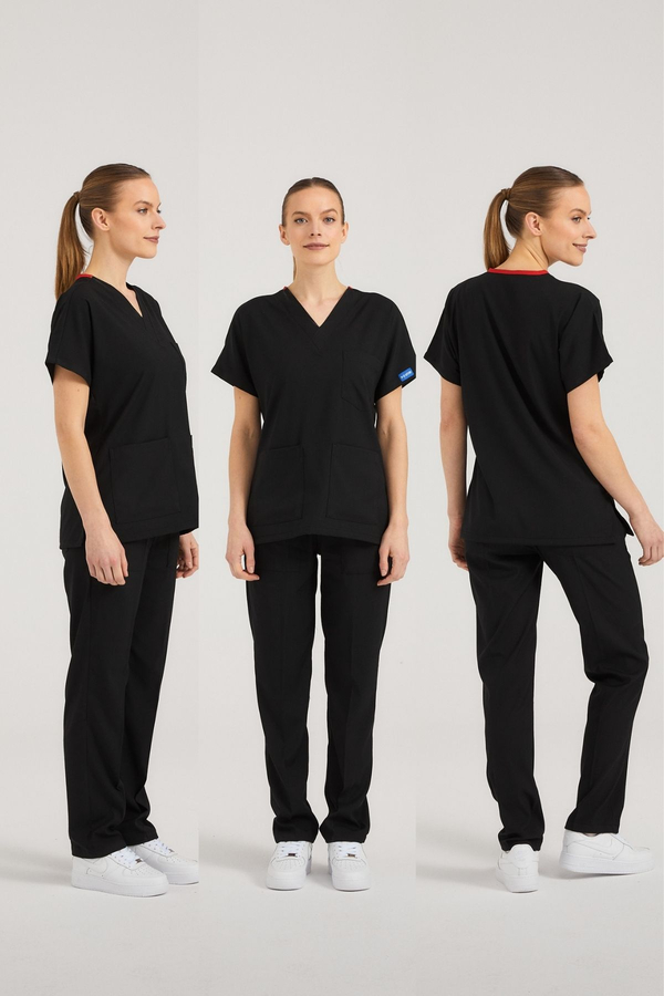 Siyah Pozitif Likralı Cerrahi Takım - Scrubs Forma (Alt+Üst)